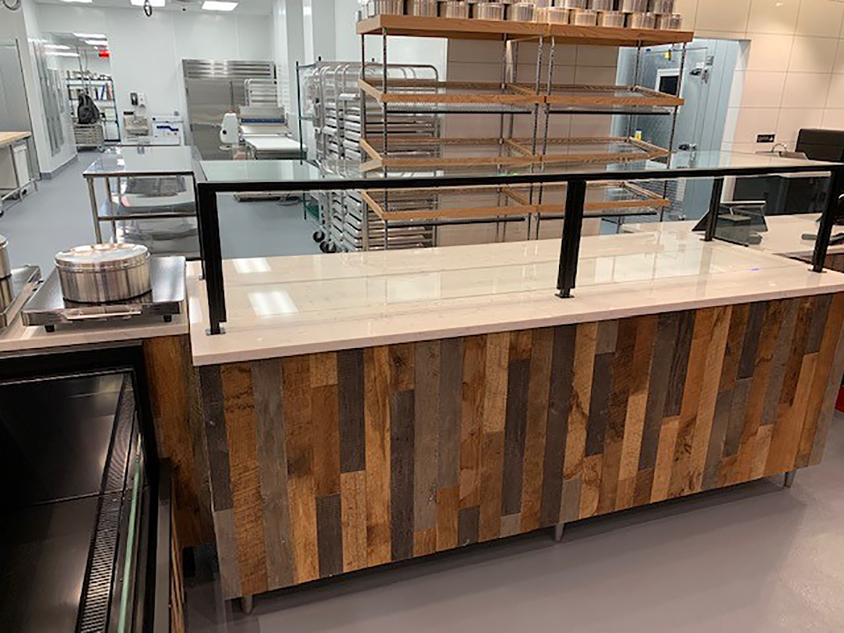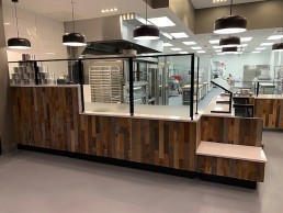 Orion was responsible for producing the entire frontline and backline millwork, stone, metal, and glass. We also fabricated custom wire baker’s racks, bench seating, and the dining room wall coverings.